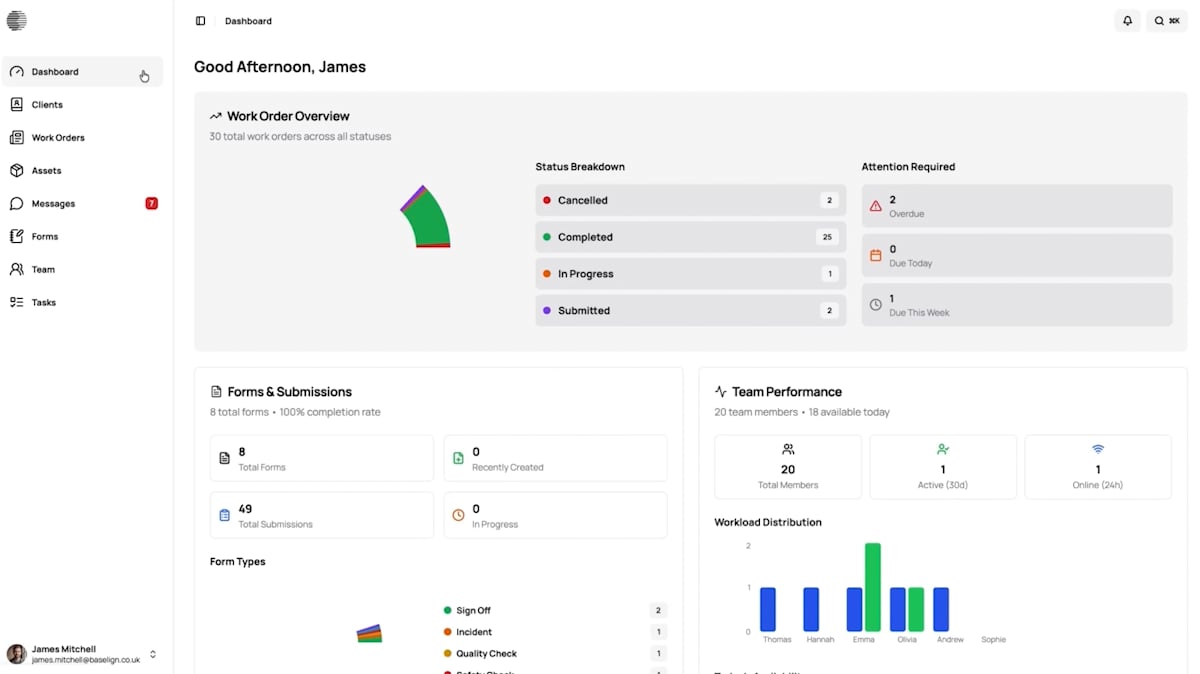 Manage assets, work orders, tasks, clients, and field operations from one real-time platform.